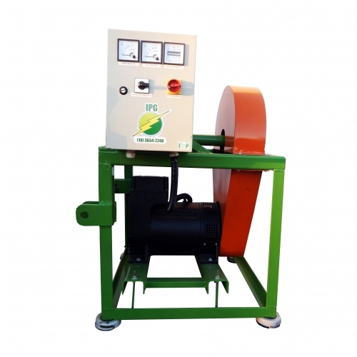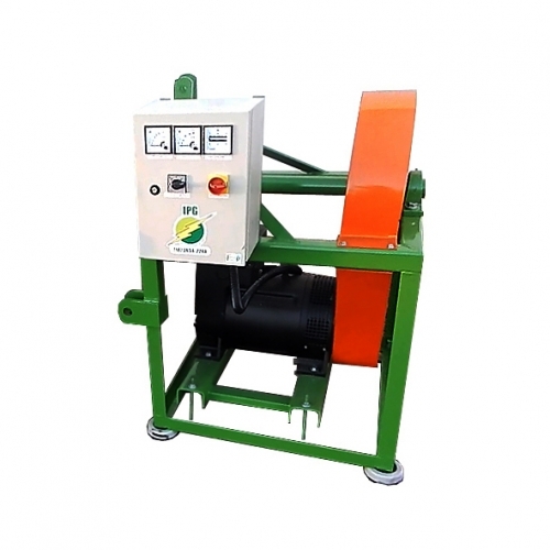 • O Alternador WEG 30 Kva é acoplado a uma base com multiplicador de rotação e a um painel de saída de energia.